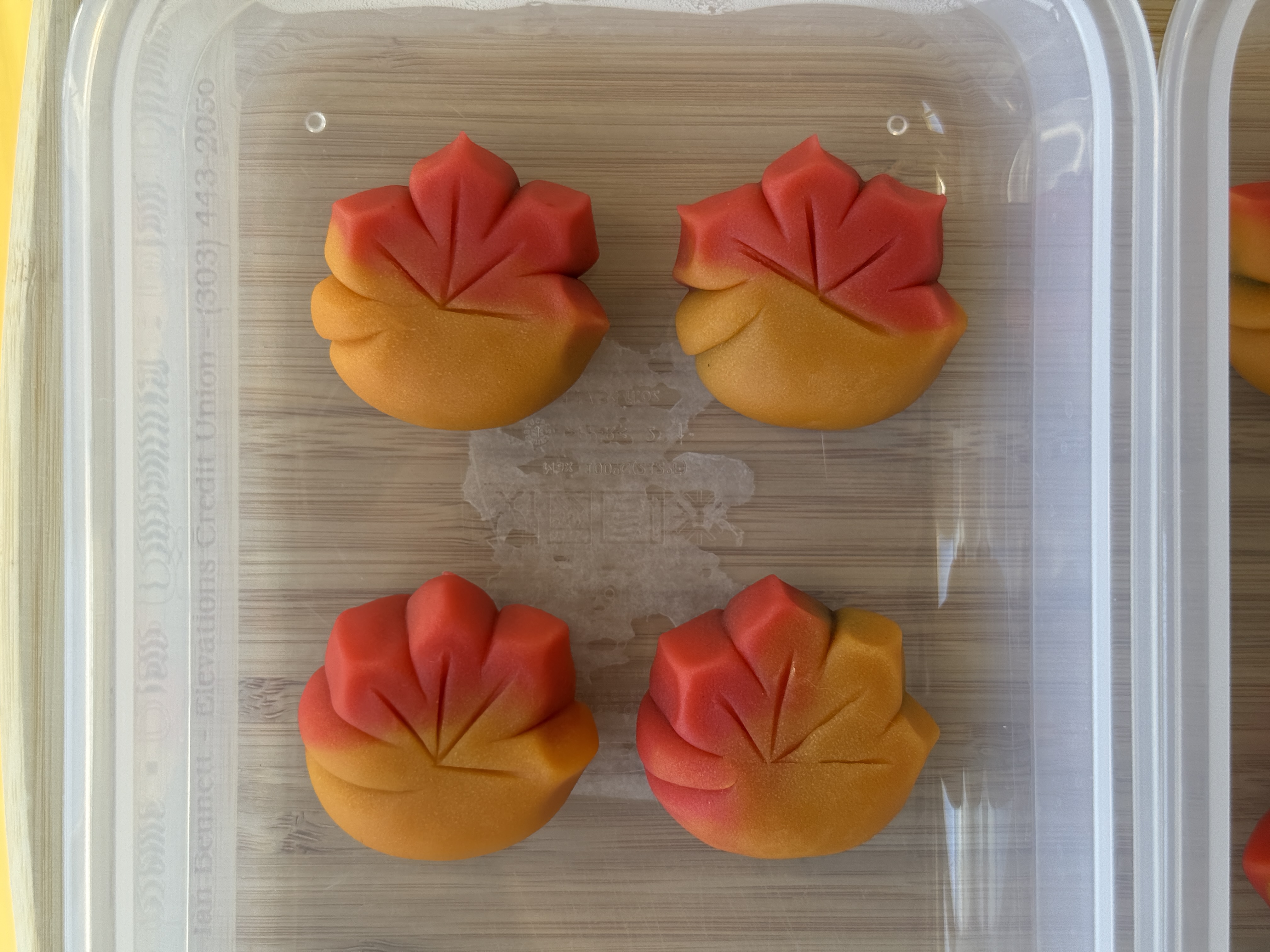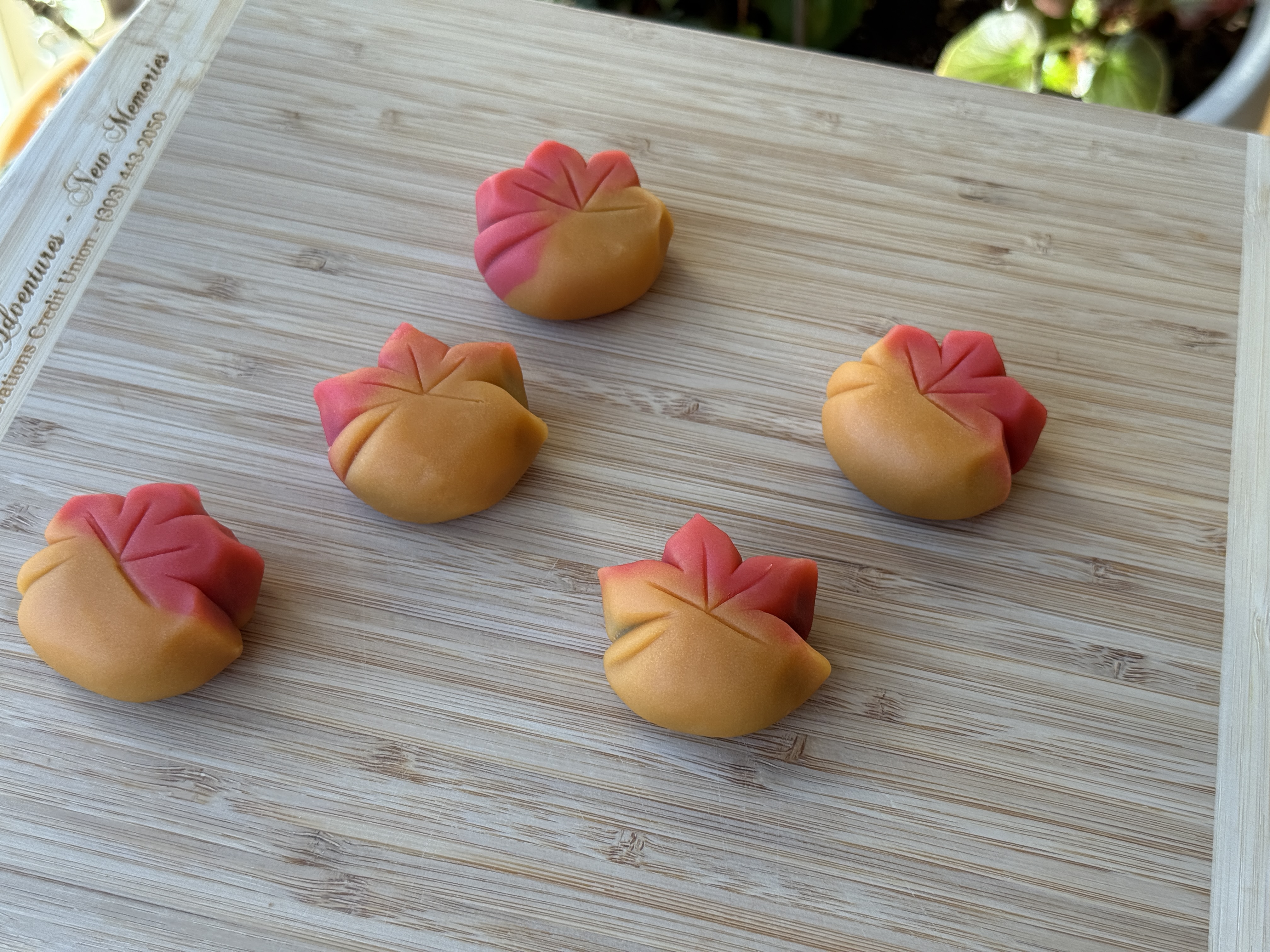 Konashi started to dry as we worked with it, then by the time we got to making the veins, the konashi tore instead of cleanly indenting. Putting it back under a damp paper towel for a bit helped.